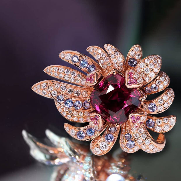 SimoneBirds in Poetry: Whimsical Feather RingUnheated Rhodolite Garnet : 1 - 10.02 carats